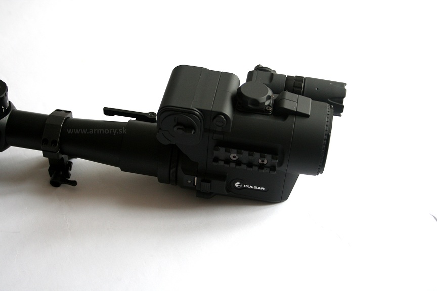 Digitálne nočné videnie Pulsar DFA-75 je jedným z produktov digitálnej modelovej línie Yukonu a jeho luxusnej divízie Pulsar. V tomto prípade ide o ojedinelý a pravdepodobne prvý produkt spájajúci vlastnosti prístroja digitálneho nočného videnia a systému deň/noc alebo predsádky nočného videnia. Pulsar DFA-75 je členom čoraz väčšej skupiny prístrojov nočného videnia označovaných ako deň/noc systémy. Tieto zariadenia umožňujú rýchlu zmenu bežnej dennej optiky na zariadenie nočného videnia. Do svojej prevádzkovej polohy sa montuje na prednú časť dennej optiky. Pevnú a presnú montáž zabezpečuje kruhový adaptér umožňujúci montáž na prednú časť optiky. Pomocou platových redukcií je možné prístroj upevniť na celú škálu denných optík s priemerom objektívovej časti tubusu s rozmermi 47, 48, 49, 50, 55, 56, 57, 58,5 ako aj 60,62 a 65 mm. Celý proces montáže či demontáže je veľmi jednoduchý, pomerne krátko trvajúci a veľmi pevný, pričom výsledkom je zmena dennej optiky na nočné videnie a naopak. Najoptimálnejšie hodnoty zväčšenia dennej optiky pre Pulsar DFA-75 sú 1x-10x. Hlavnými výhodami sú používanie optiky a zámerného obrazca, na ktoré je užívateľ navyknutý a zároveň odpadá nutnosť opätovného nastreľovania dennej a nočnej optiky, či používanie drahých montážnych riešení a opakované snímanie a nasadzovanie optík, ktoré v sebe vždy nesú riziko posunu nástrelu. Toto riešenie zároveň zabraňuje svetelným stratám a degradácii výkonu prístroja nočného videnia vznikajúcim pri nasadení adaptéra na zadnú časť dennej optiky. Model DFA-75 sa vyznačuje vylepšeným senzorom s vyššou citlivosťou na zostatkové svetlo – dokáže pracovať pri úrovni 0,0001 lux a lepším rozlíšením senzora 500x582. Vylepšený pokrokový senzor zabezpečuje väčší dosah – až do 400m na objekt s rozmermi 1,7x0,5 m (ľudská postava) pri jasnej oblohe a 1 mesiaci. Ide už o druhú generáciu tejto kategórie v ponuke spoločnosti Yukon, tentokrát príznačne pod ich novou prestížnou značkou Pulsar Line. U DFA-75 pomocou Encodera a funkcie v Menu dochádza automatickej aktivácii digitálneho spracovania obrazu Sum Light optimalizujúceho a sumujúceho svetelný tok na vstupe. Aplikáciou moderných digitálnych technologických riešení vznikli prístroje novej generácie, schopné činnosti počas dňa i noci bez rizika ich poškodenia. Oproti predchádzajúcej generácii došlo k poklesu počtu elektrických článkov nutných k napájaniu prístroja zo 6-tich AA na 4 AA batérie. Tieto 4 AA batérie dokážu napájať prístroj nepretržite po dobu 2 hodín bez IR prisvietenia alebo 1,5 hodiny s aktivovaným IR iluminátorom. Súčasťou balenia je i náhradný kontajner na náhradné AA 1,5 V batérie, pričom DFA-75 je možné napájať súčasne i z externého batériového zdroja prípadne pomocou autonabíjačky. Srdcom prístroja je vylepšený senzor SONY ICX-255 AL. Hlavným rozlišovacím znakom oproti prvej generácii digitálnych prístrojov je použitie CCD senzora s vyššou citlivosťou a vylepšeného softwaru umožňujúceho digitálne spracovanie obrazového signálu. Obraz je zobrazovaný pomocou OLED displeja s rozlíšením 640x480 pixelov. Podľa tvrdenia výrobcu je ostrosť obrazu a rozlíšenie porovnateľné s noktovíznymi prístrojmi generácie 2+. DFA-75 umožňuje použitie v intervale od 0,0001 po 30 000 luxov pri teplotách od -20°C po +50°C. Stupeň odolnosti voči prieniku vlhkosti a prachových častíc je IPX6. Rozlíšenie prístroja dosahuje po prepočítaní na parametre klasického noktovízora minimálne 50 lp/mm až k okrajom (ostrý obraz je nielen v strede), pričom chýbajú typické kozmetické defekty fosforových tienidiel klasických noktovízorov. Odolnosť prístroja voči mechanickým rázom dosahuje minimálne 6 000 Joulov. Použitím najnovších technológií a rozsiahlou aplikáciou plastov je prístroj kompaktný s rozmermi 155x82x117 mm a jeho hmotnosť dosahuje iba 560 gramov. DFA-75 má okrem nízkej hmotnosti zorné pole o šírke 5° a je veľmi robustný. DFA-75 je fokusovateľný od 5 metrov po prakticky nekonečno. Prístroj môže byť vybavený IR iluminátorom pracujúcim na vlnovej dĺžke 915 nm, ktorého výkon je nastaviteľný v troch hladinách 90 mW/110 mW/150 mW. Predná časť – teda šošovka objektívu má priemer 50 mm a jej F hodnota je údajne vynikajúcich 1,0. Zväčšenie prístroja je 1x. Na ľavej bočnej stene prístroja sa nachádza odnímateľný kryt kryjúci závit a kontakt pre upevnenie IR iluminátora pracujúceho na vlnovej dĺžke 915 nm, ktorá je neviditeľná pre oči divej zveri. DFA-75 je vybavený bezdrôtovým diaľkovým ovládaním s tromi ovládacími prvkami. Digitálna predsádka nočného videnia DFA-75 disponuje sériovo portami pre videovýstup a napájania z externého batériového zdroja alebo autonabíjačky.